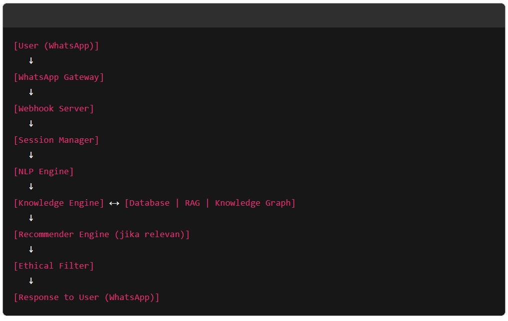 • Penerapan prompt chaining berbasis persona dan lokalitas, memungkinkan respons bernuansa, kontekstual, dan lebih manusiawi.